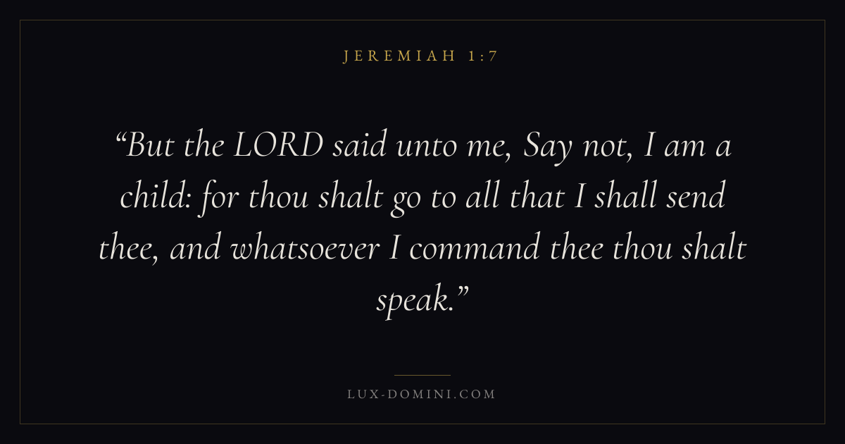 But the LORD said unto me, Say not, I am a child: for thou shalt go to all that I shall send thee, and whatsoever I command thee thou shalt speak.