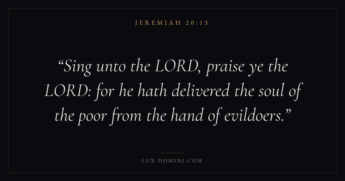 Sing unto the LORD, praise ye the LORD: for he hath delivered the soul of the poor from the hand of evildoers.