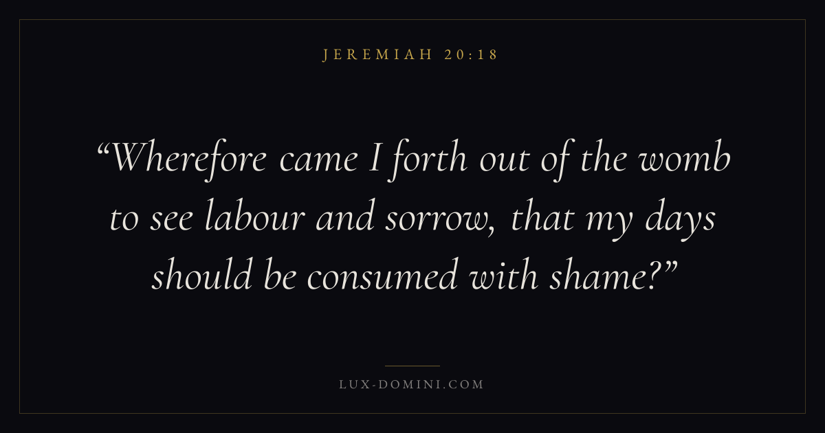 Wherefore came I forth out of the womb to see labour and sorrow, that my days should be consumed with shame?