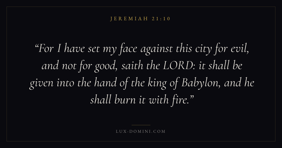 For I have set my face against this city for evil, and not for good, saith the LORD: it shall be given into the hand of the king of Babylon, and he shall burn it with fire.