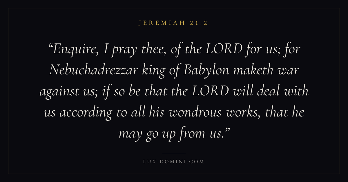 Enquire, I pray thee, of the LORD for us; for Nebuchadrezzar king of Babylon maketh war against us; if so be that the LORD will deal with us according to all his wondrous works, that he may go up from us.