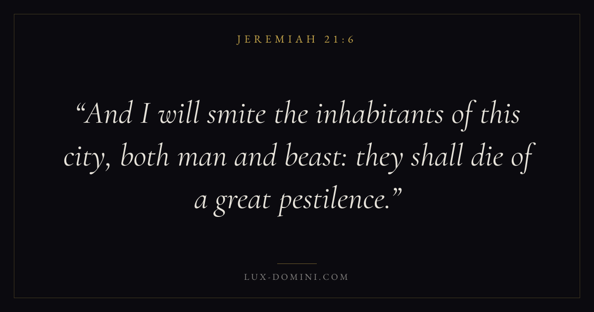 And I will smite the inhabitants of this city, both man and beast: they shall die of a great pestilence.