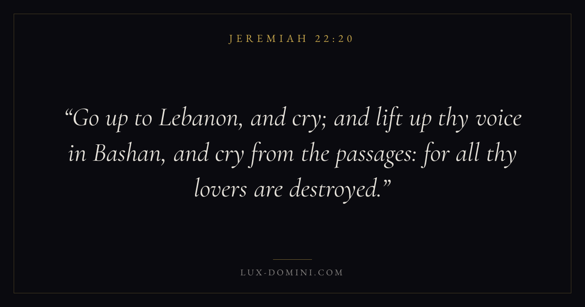 Go up to Lebanon, and cry; and lift up thy voice in Bashan, and cry from the passages: for all thy lovers are destroyed.