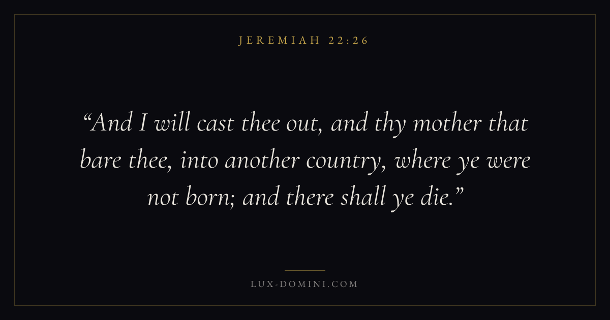 And I will cast thee out, and thy mother that bare thee, into another country, where ye were not born; and there shall ye die.