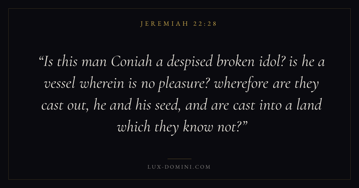 Is this man Coniah a despised broken idol? is he a vessel wherein is no pleasure? wherefore are they cast out, he and his seed, and are cast into a land which they know not?