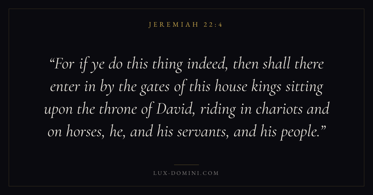 For if ye do this thing indeed, then shall there enter in by the gates of this house kings sitting upon the throne of David, riding in chariots and on horses, he, and his servants, and his people.
