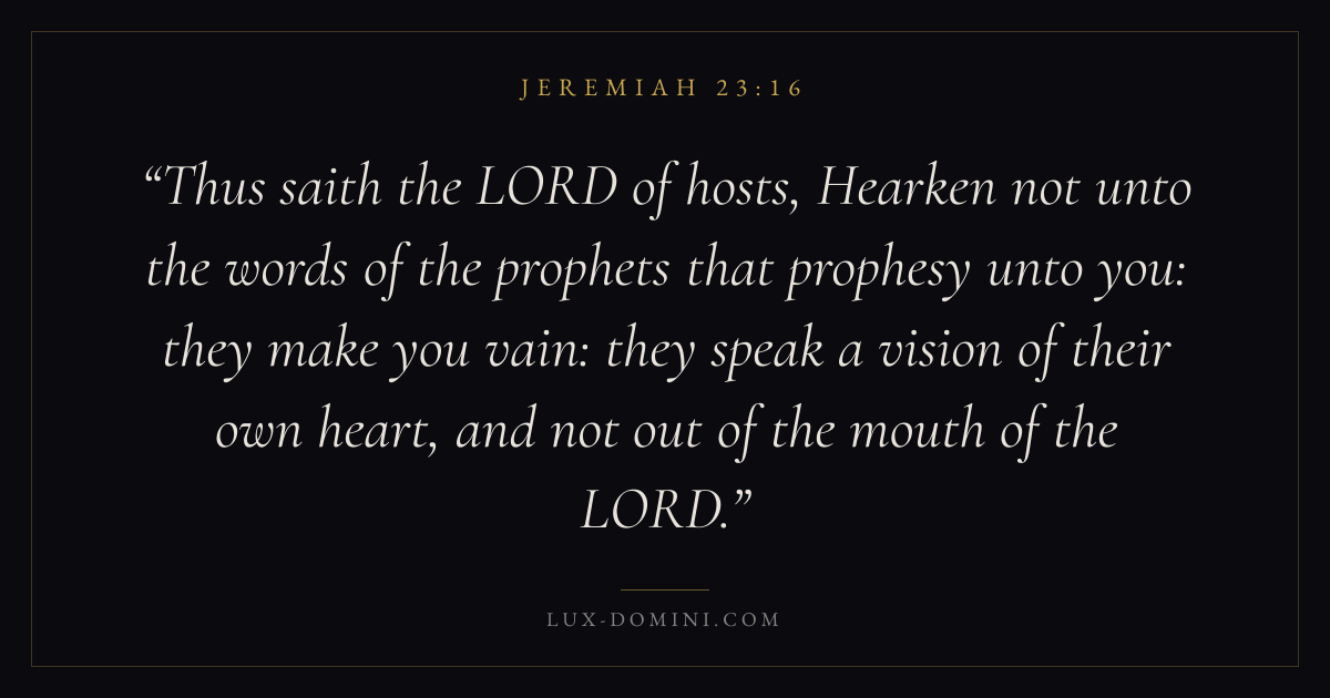 Thus saith the LORD of hosts, Hearken not unto the words of the prophets that prophesy unto you: they make you vain: they speak a vision of their own heart, and not out of the mouth of the LORD.