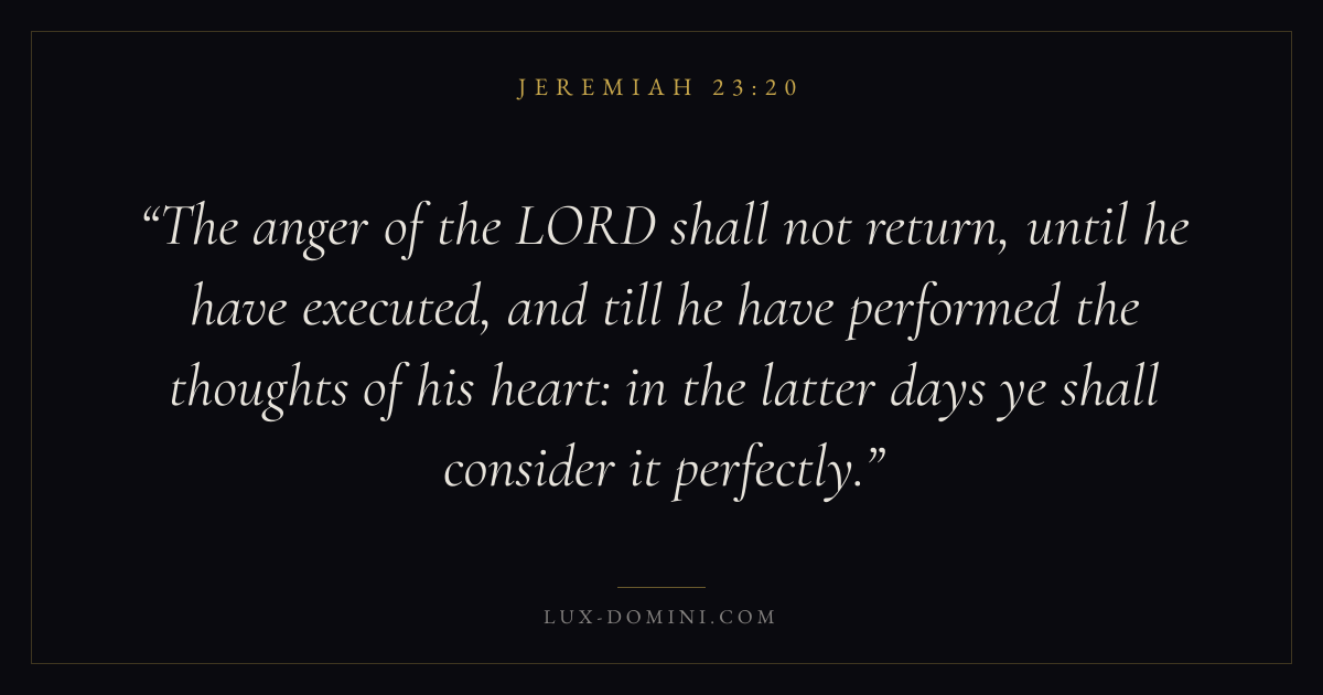 The anger of the LORD shall not return, until he have executed, and till he have performed the thoughts of his heart: in the latter days ye shall consider it perfectly.
