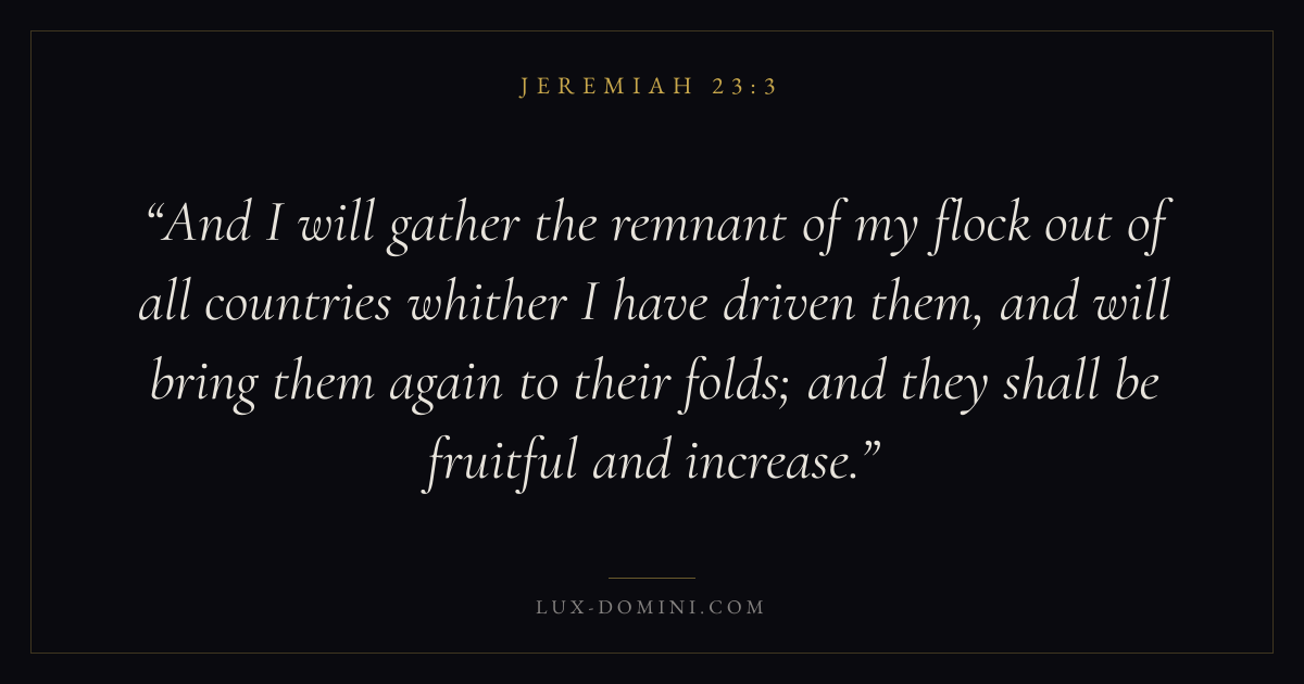 And I will gather the remnant of my flock out of all countries whither I have driven them, and will bring them again to their folds; and they shall be fruitful and increase.