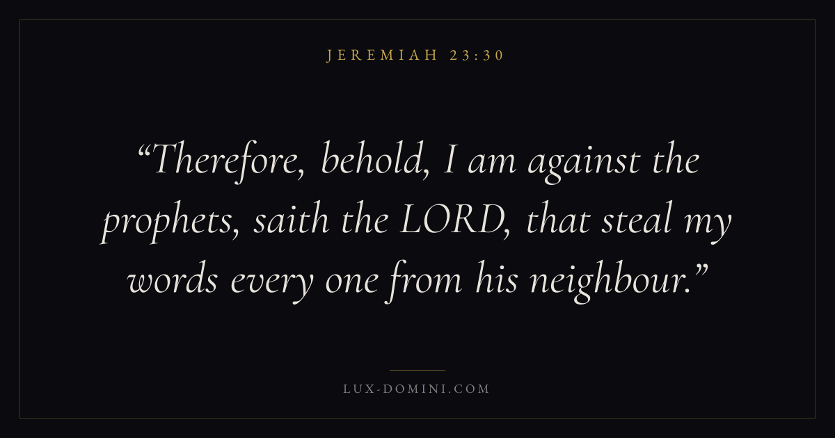 Therefore, behold, I am against the prophets, saith the LORD, that steal my words every one from his neighbour.