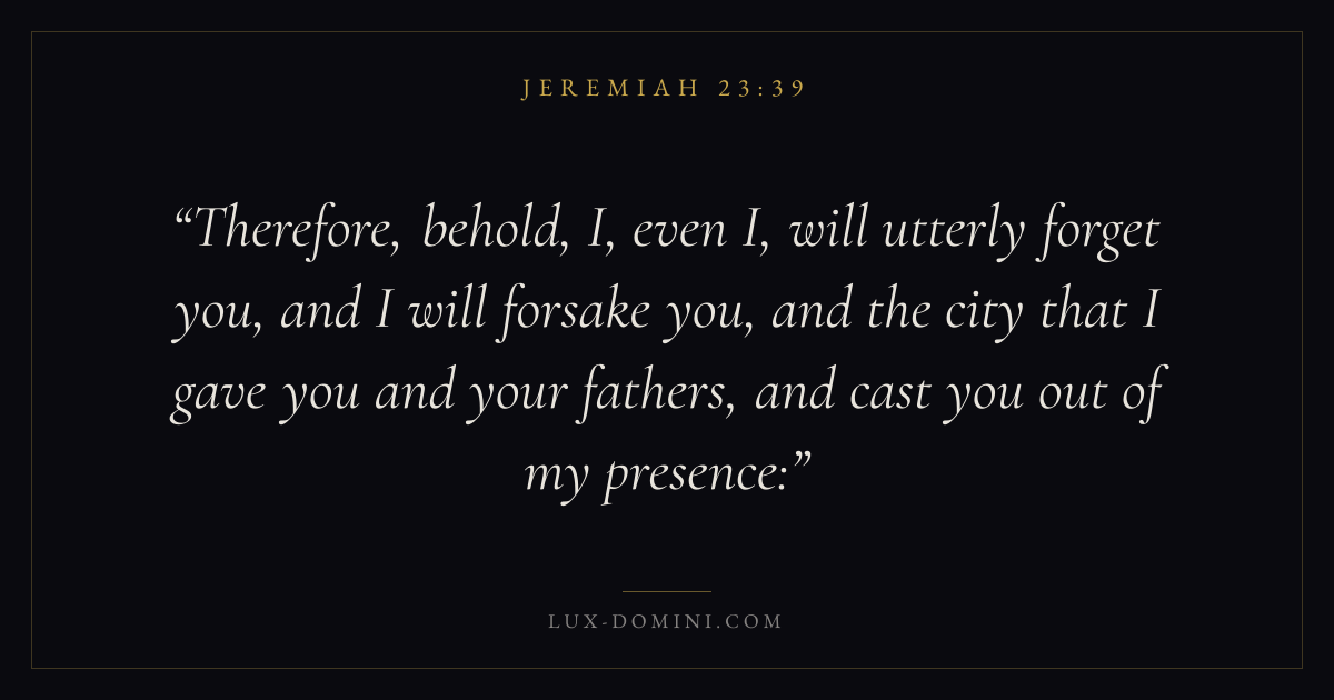 Therefore, behold, I, even I, will utterly forget you, and I will forsake you, and the city that I gave you and your fathers, and cast you out of my presence: