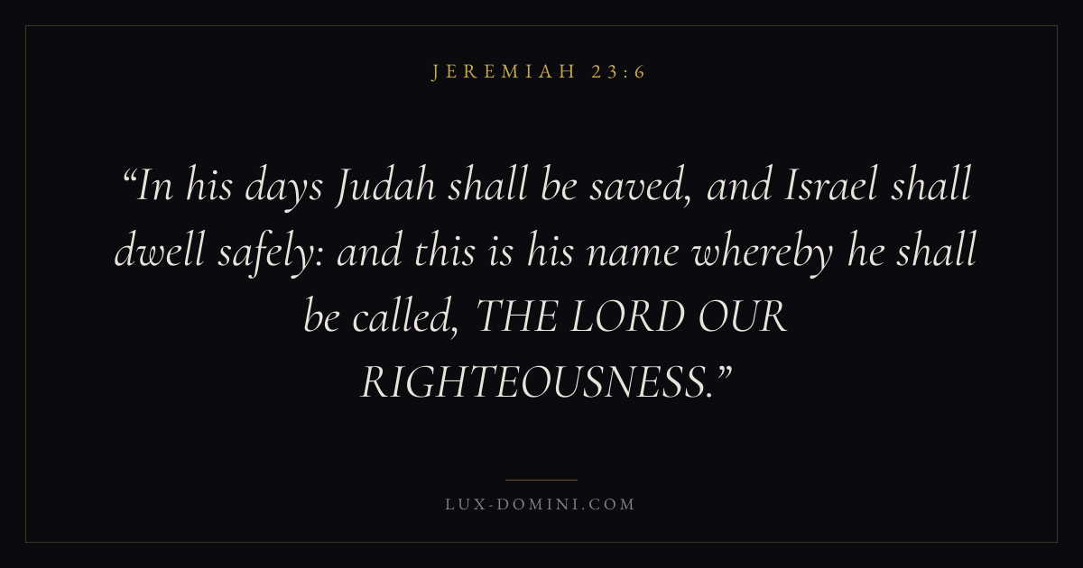In his days Judah shall be saved, and Israel shall dwell safely: and this is his name whereby he shall be called, THE LORD OUR RIGHTEOUSNESS.