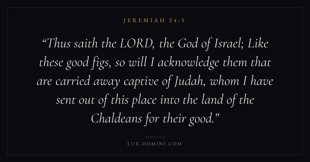 Thus saith the LORD, the God of Israel; Like these good figs, so will I acknowledge them that are carried away captive of Judah, whom I have sent out of this place into the land of the Chaldeans for their good.