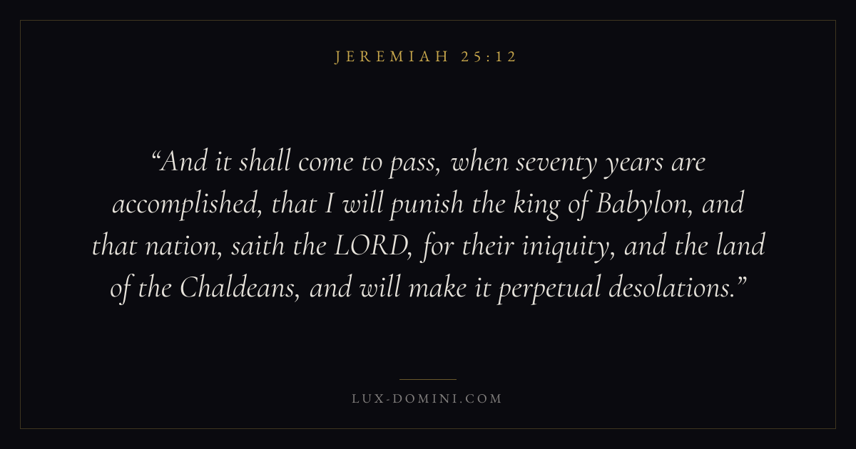 And it shall come to pass, when seventy years are accomplished, that I will punish the king of Babylon, and that nation, saith the LORD, for their iniquity, and the land of the Chaldeans, and will make it perpetual desolations.