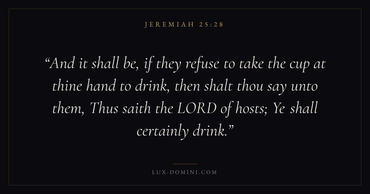 And it shall be, if they refuse to take the cup at thine hand to drink, then shalt thou say unto them, Thus saith the LORD of hosts; Ye shall certainly drink.