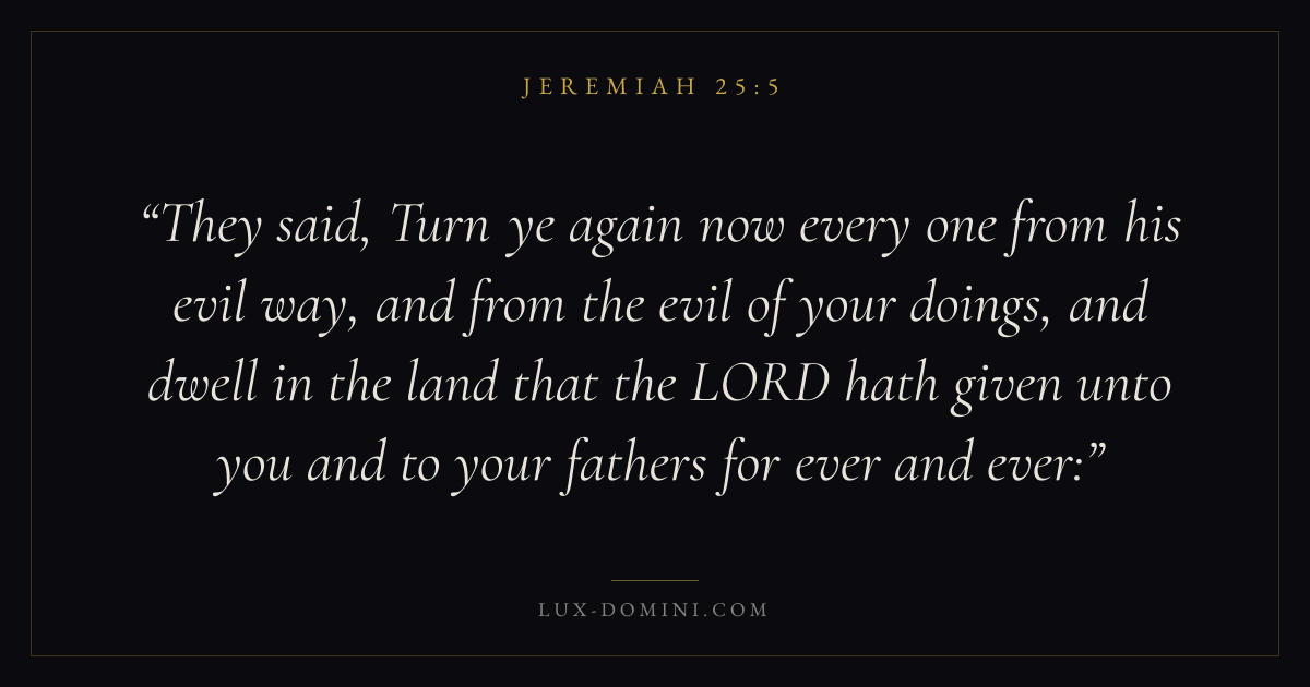 They said, Turn ye again now every one from his evil way, and from the evil of your doings, and dwell in the land that the LORD hath given unto you and to your fathers for ever and ever: