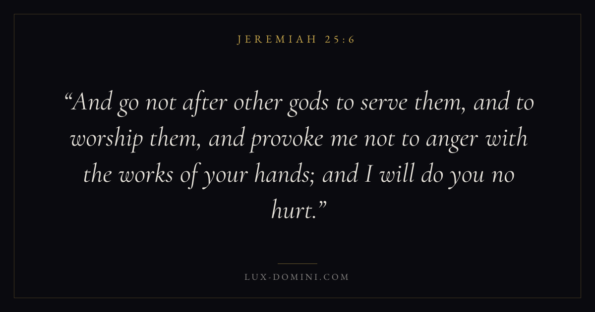 And go not after other gods to serve them, and to worship them, and provoke me not to anger with the works of your hands; and I will do you no hurt.