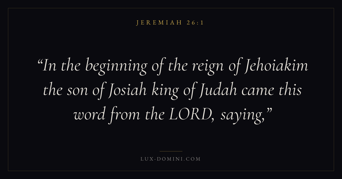 In the beginning of the reign of Jehoiakim the son of Josiah king of Judah came this word from the LORD, saying,