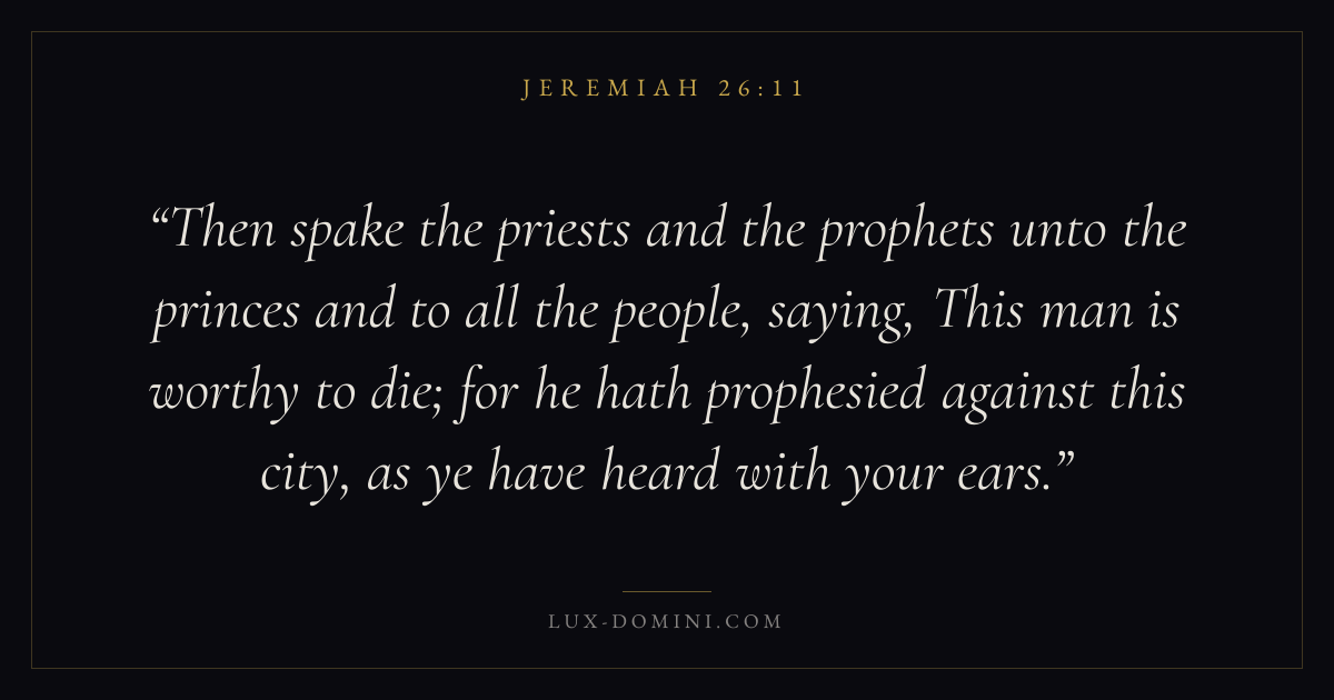 Then spake the priests and the prophets unto the princes and to all the people, saying, This man is worthy to die; for he hath prophesied against this city, as ye have heard with your ears.