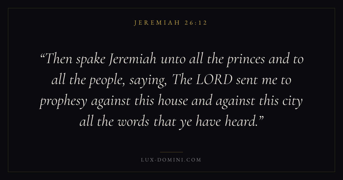 Then spake Jeremiah unto all the princes and to all the people, saying, The LORD sent me to prophesy against this house and against this city all the words that ye have heard.