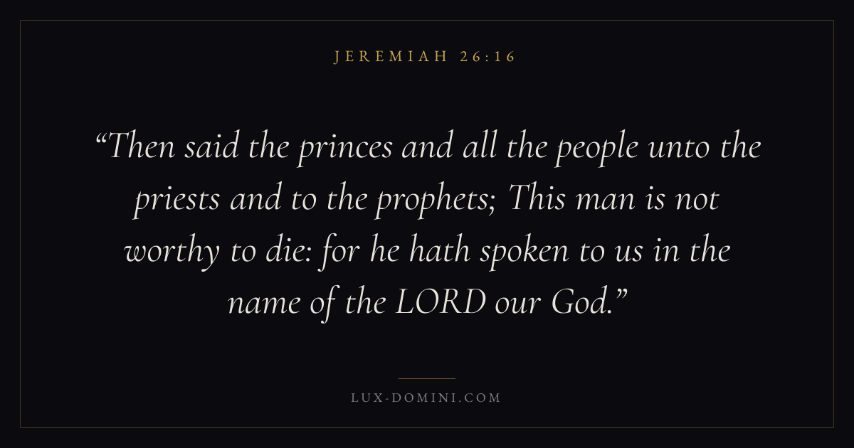 Then said the princes and all the people unto the priests and to the prophets; This man is not worthy to die: for he hath spoken to us in the name of the LORD our God.