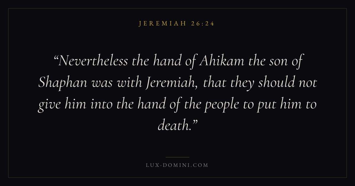 Nevertheless the hand of Ahikam the son of Shaphan was with Jeremiah, that they should not give him into the hand of the people to put him to death.