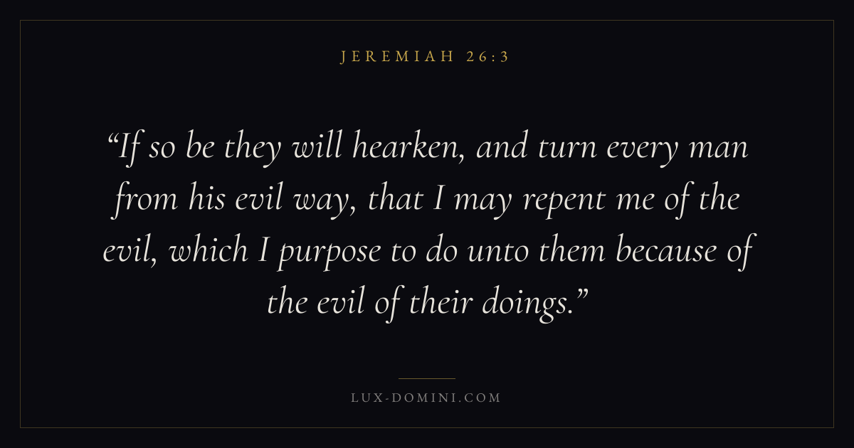 If so be they will hearken, and turn every man from his evil way, that I may repent me of the evil, which I purpose to do unto them because of the evil of their doings.