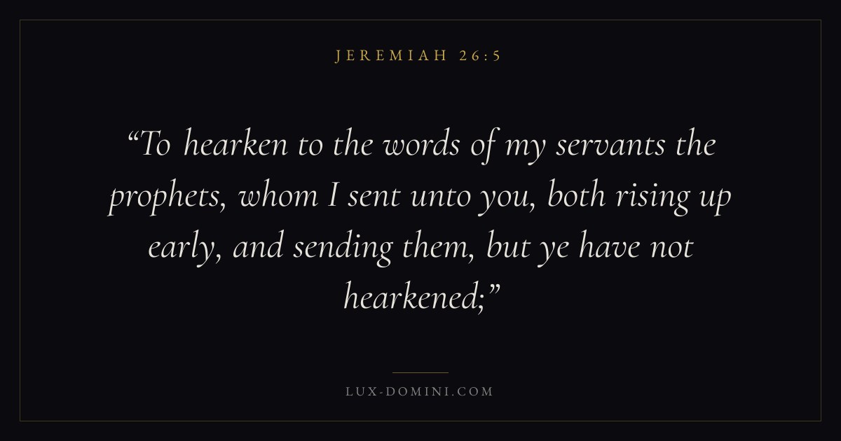 To hearken to the words of my servants the prophets, whom I sent unto you, both rising up early, and sending them, but ye have not hearkened;