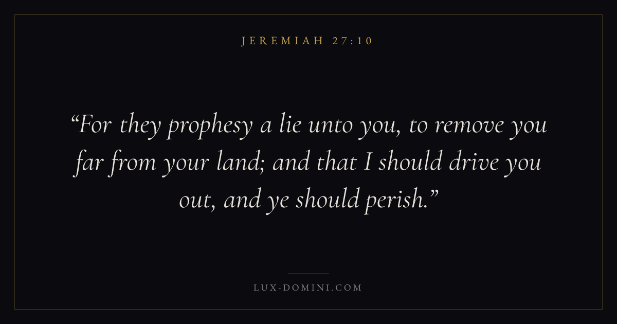 For they prophesy a lie unto you, to remove you far from your land; and that I should drive you out, and ye should perish.