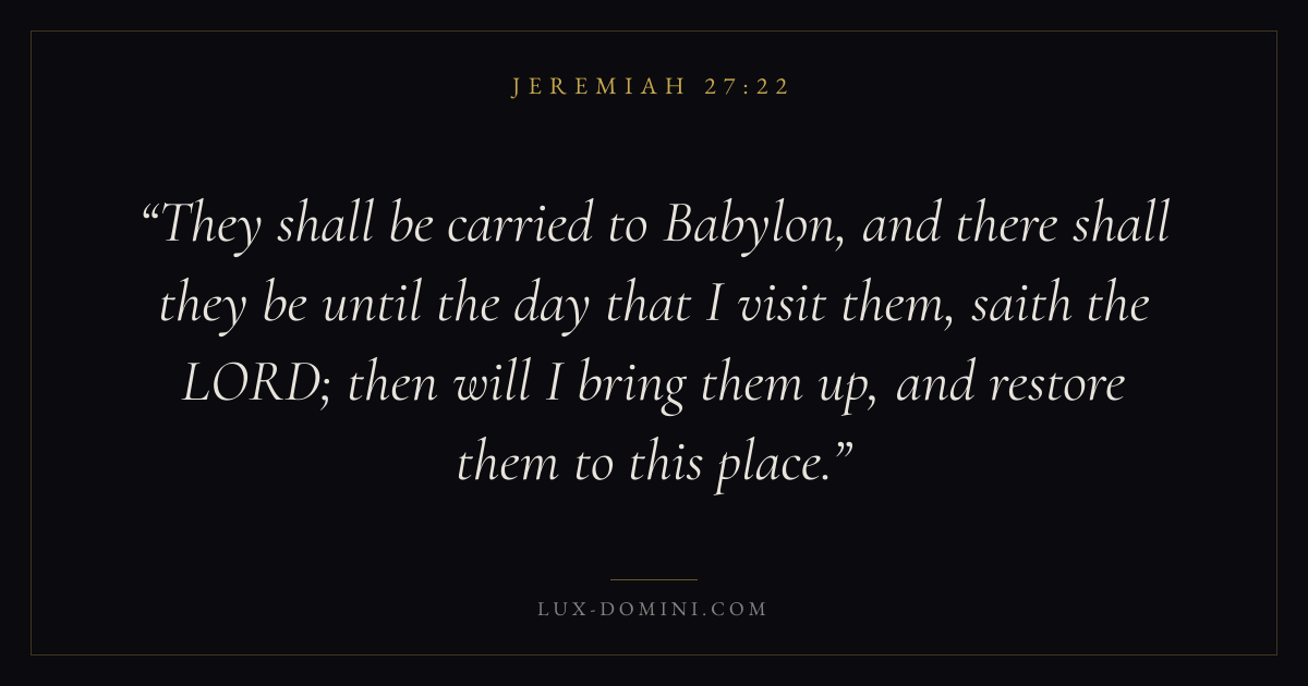 They shall be carried to Babylon, and there shall they be until the day that I visit them, saith the LORD; then will I bring them up, and restore them to this place.