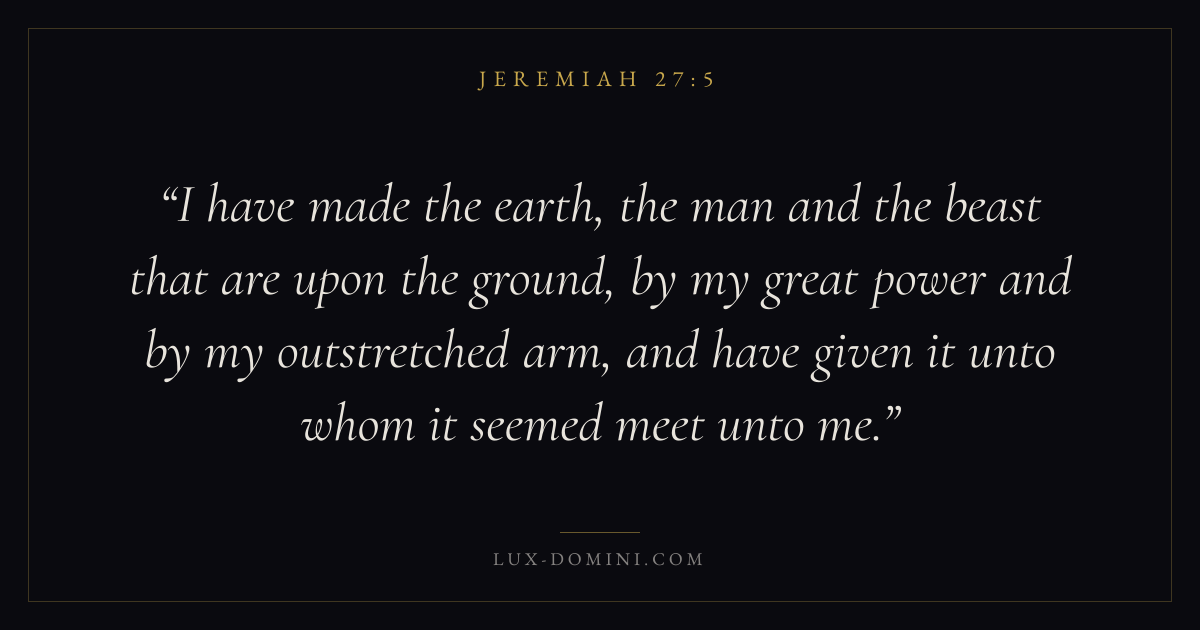 I have made the earth, the man and the beast that are upon the ground, by my great power and by my outstretched arm, and have given it unto whom it seemed meet unto me.