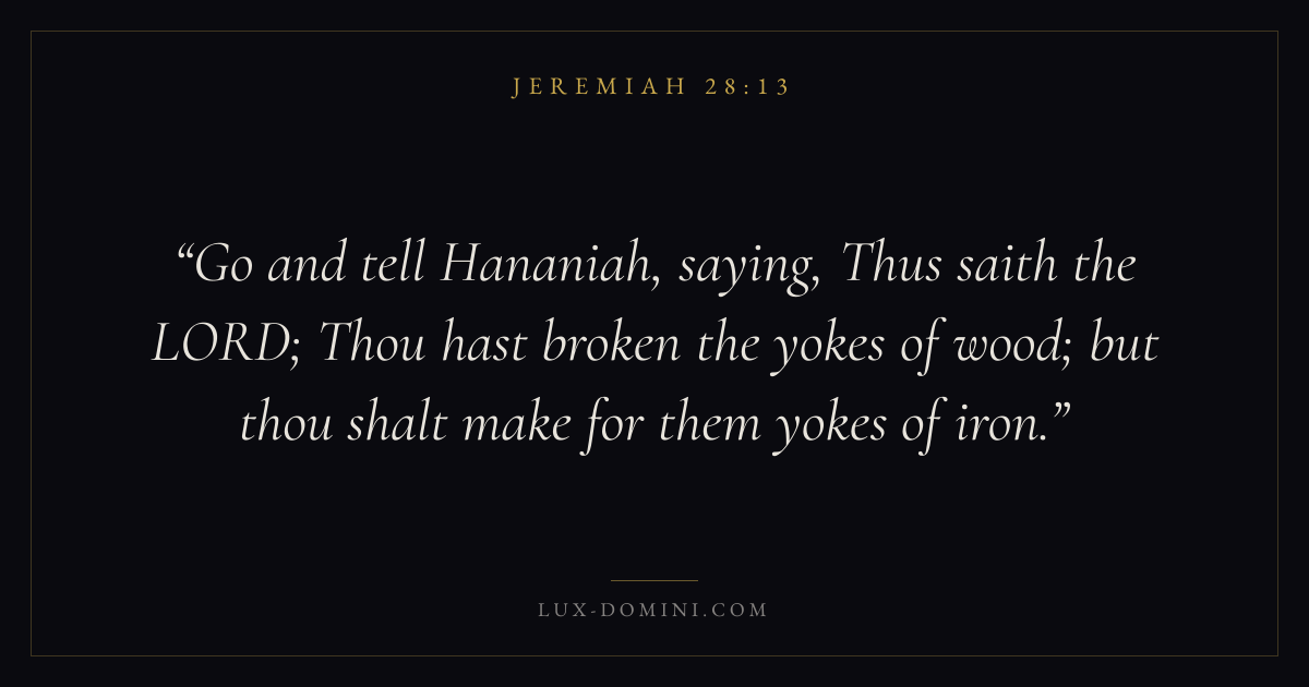 Go and tell Hananiah, saying, Thus saith the LORD; Thou hast broken the yokes of wood; but thou shalt make for them yokes of iron.