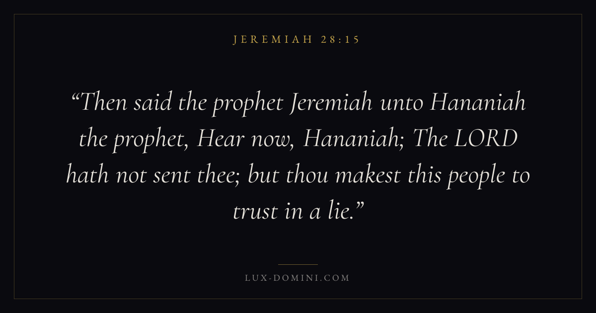 Then said the prophet Jeremiah unto Hananiah the prophet, Hear now, Hananiah; The LORD hath not sent thee; but thou makest this people to trust in a lie.