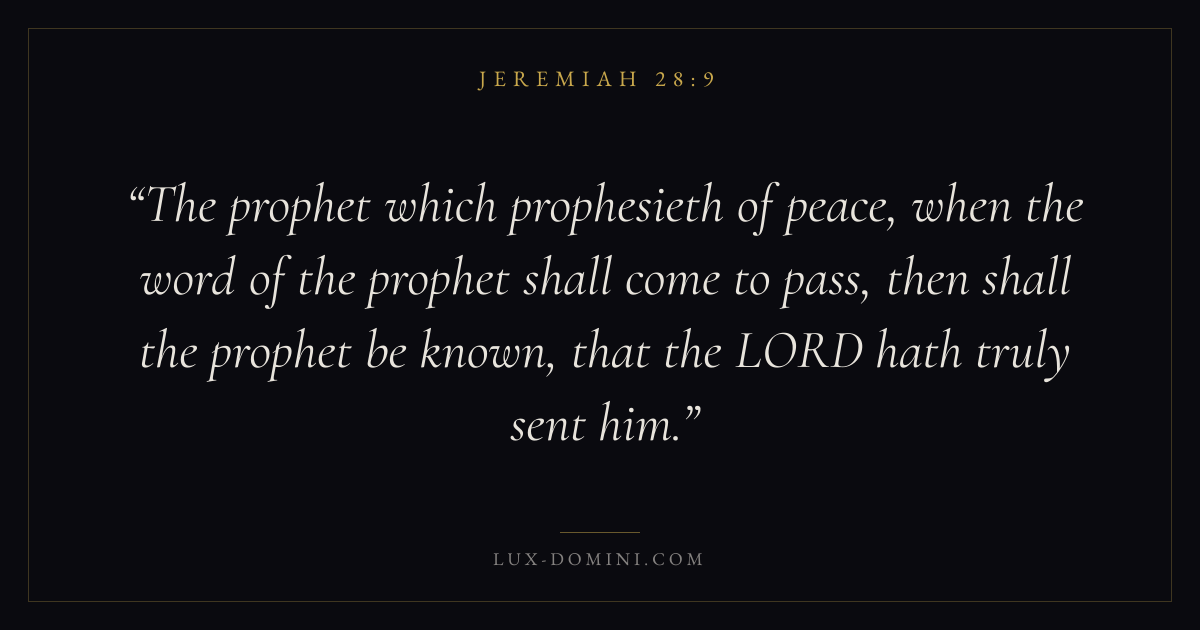 The prophet which prophesieth of peace, when the word of the prophet shall come to pass, then shall the prophet be known, that the LORD hath truly sent him.
