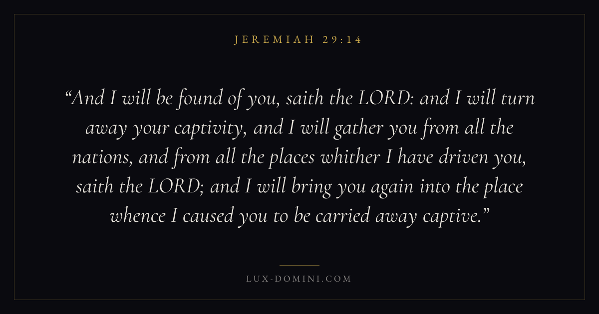 And I will be found of you, saith the LORD: and I will turn away your captivity, and I will gather you from all the nations, and from all the places whither I have driven you, saith the LORD; and I will bring you again into the place whence I caused you to be carried away captive.