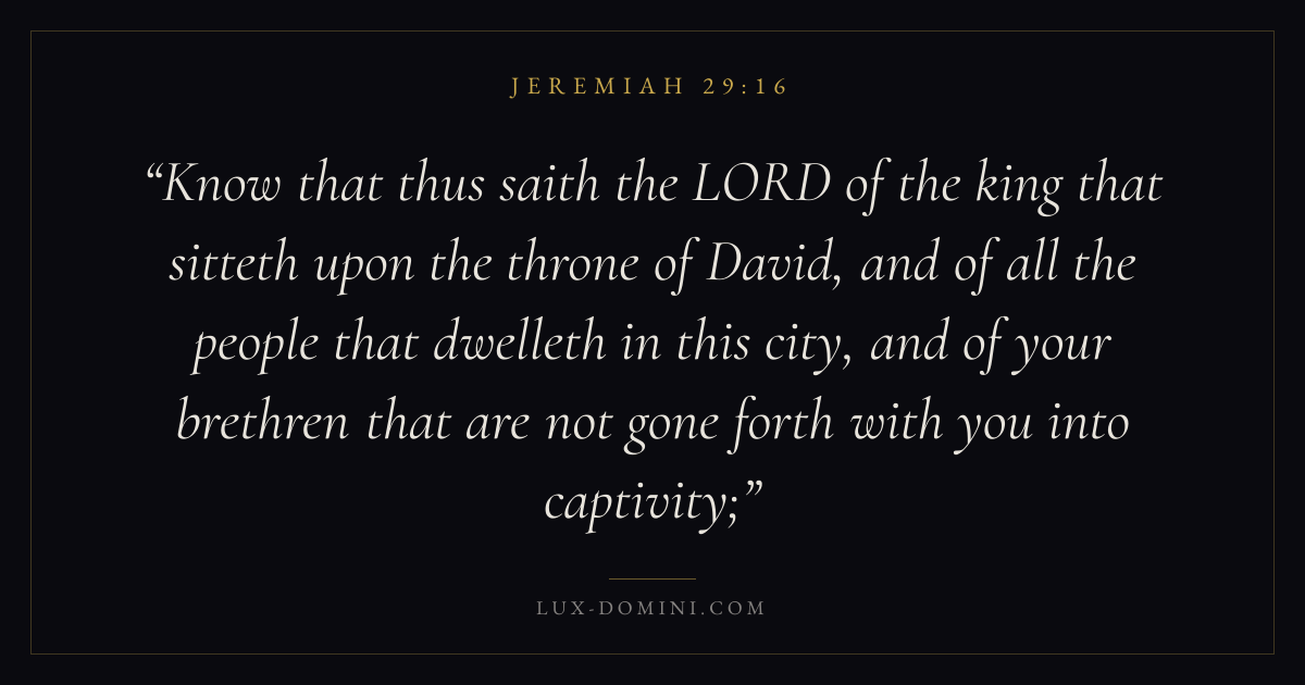 Know that thus saith the LORD of the king that sitteth upon the throne of David, and of all the people that dwelleth in this city, and of your brethren that are not gone forth with you into captivity;