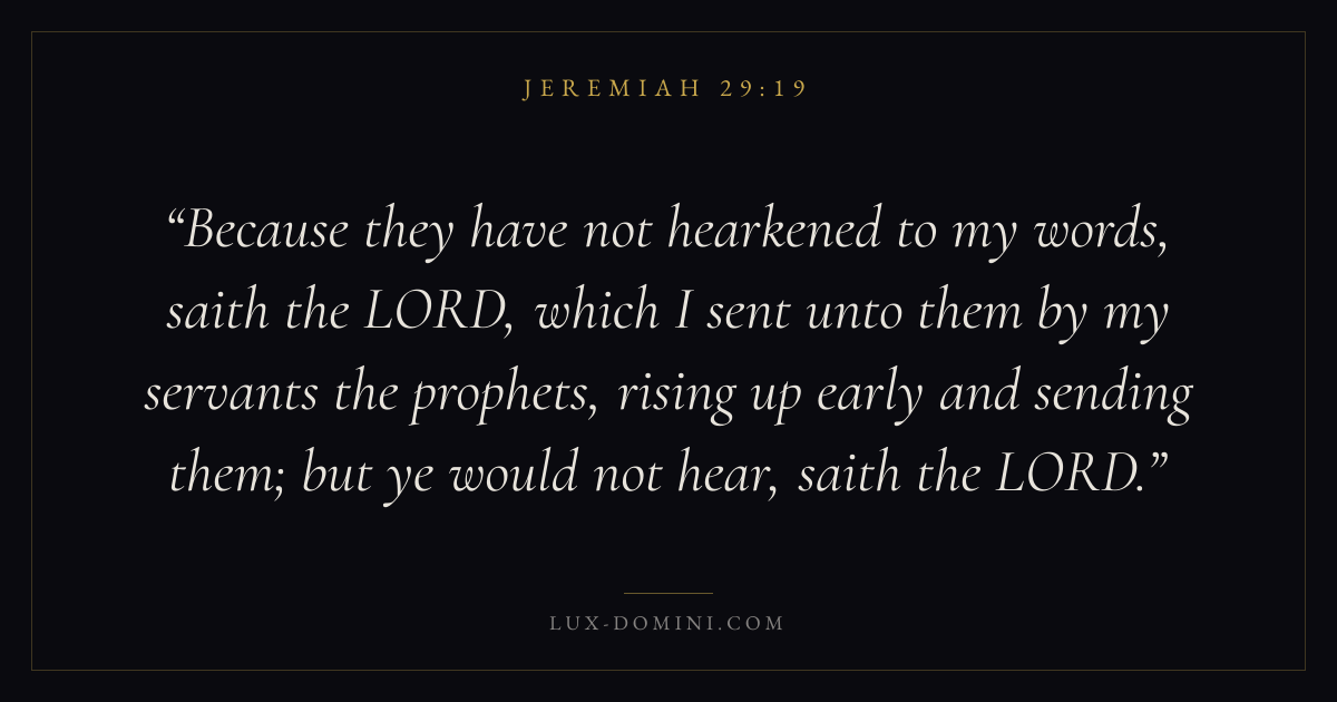 Because they have not hearkened to my words, saith the LORD, which I sent unto them by my servants the prophets, rising up early and sending them; but ye would not hear, saith the LORD.