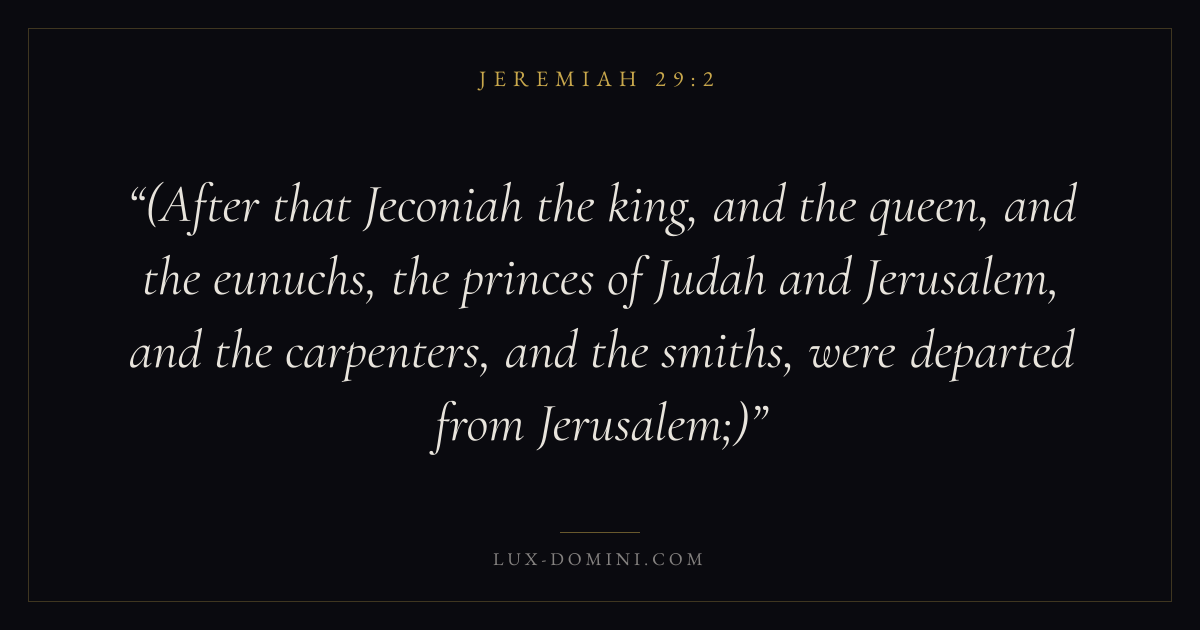 (After that Jeconiah the king, and the queen, and the eunuchs, the princes of Judah and Jerusalem, and the carpenters, and the smiths, were departed from Jerusalem;)