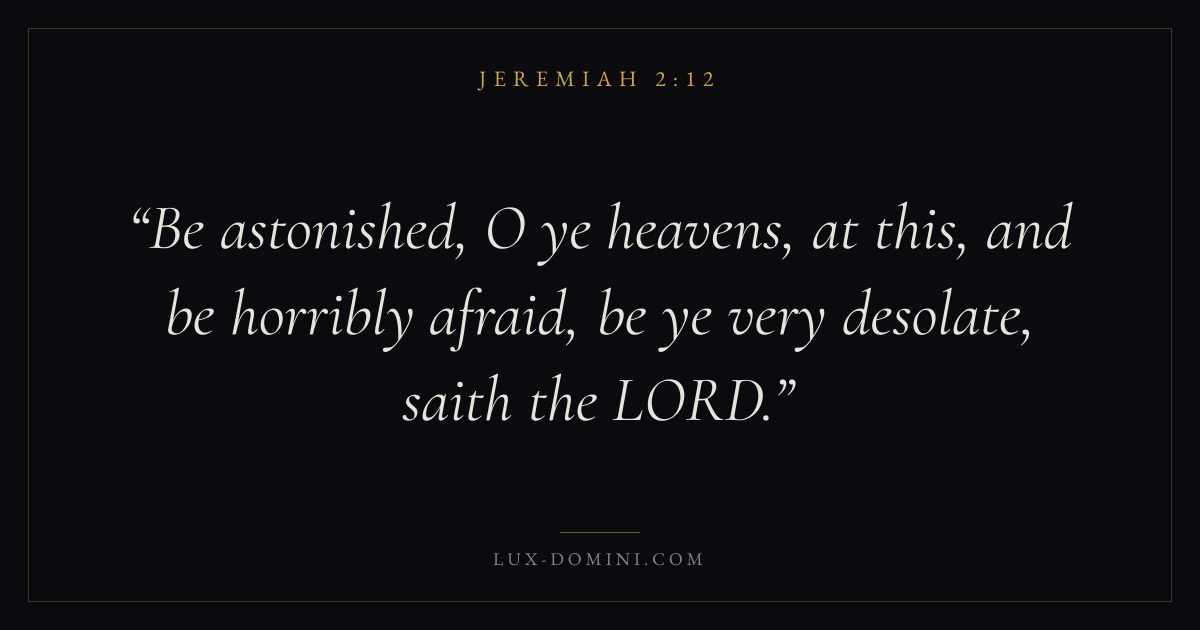 Be astonished, O ye heavens, at this, and be horribly afraid, be ye very desolate, saith the LORD.
