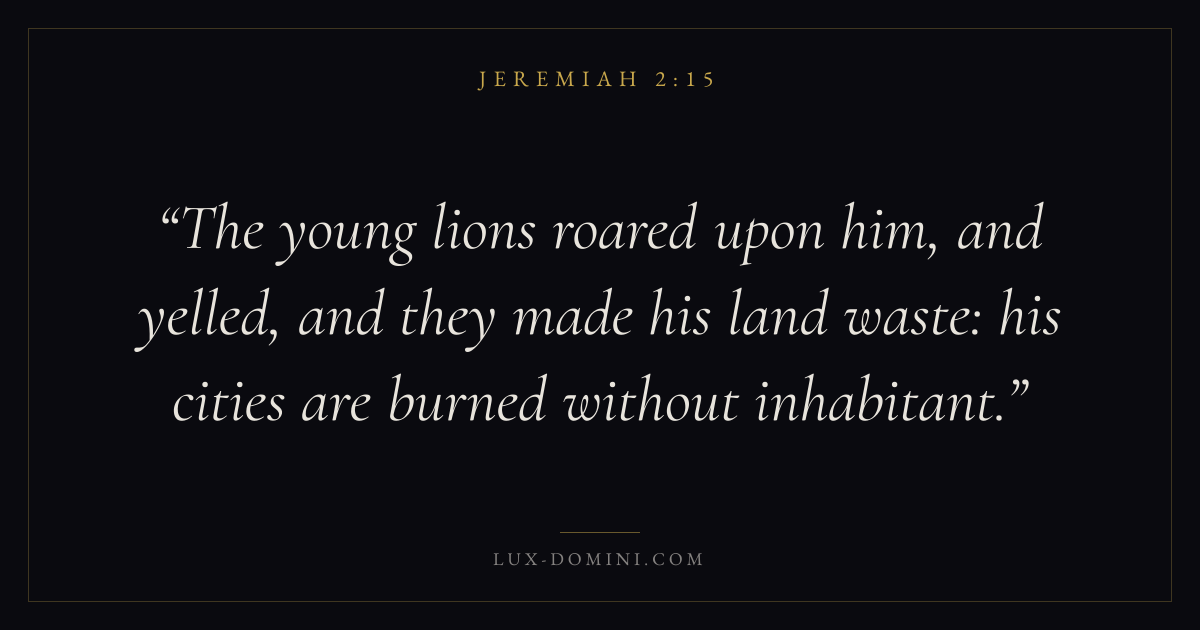 The young lions roared upon him, and yelled, and they made his land waste: his cities are burned without inhabitant.