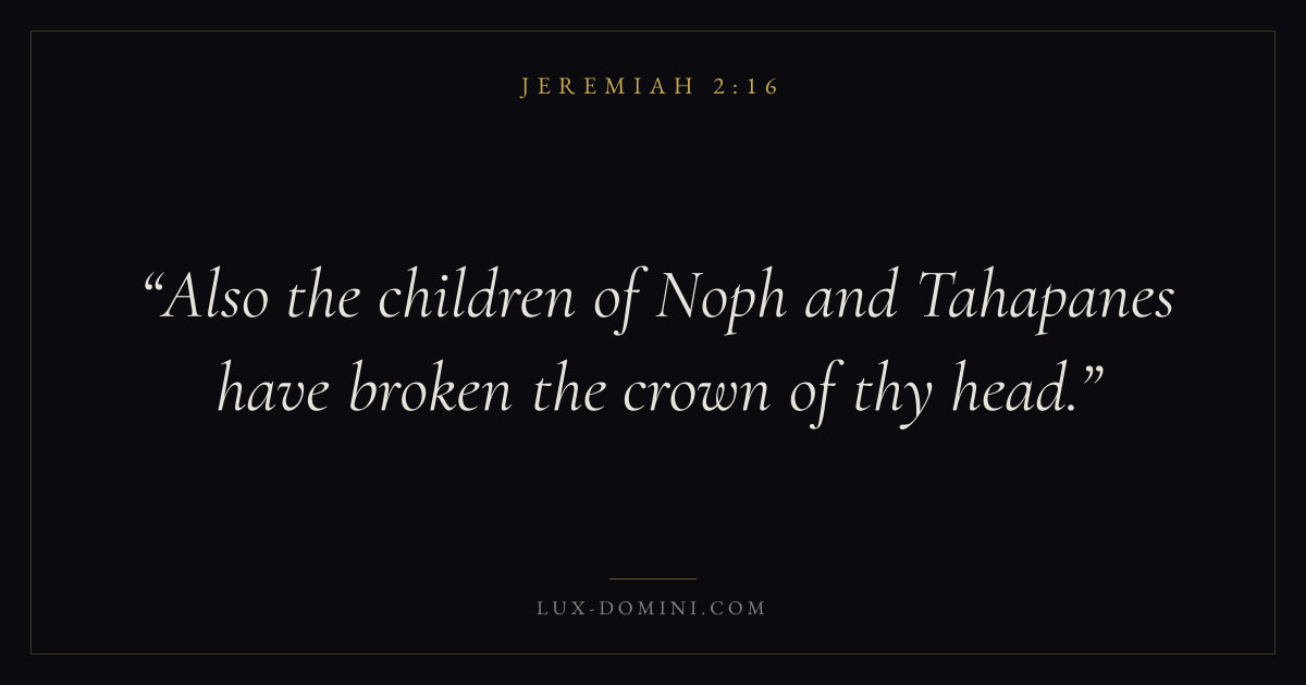 Also the children of Noph and Tahapanes have broken the crown of thy head.