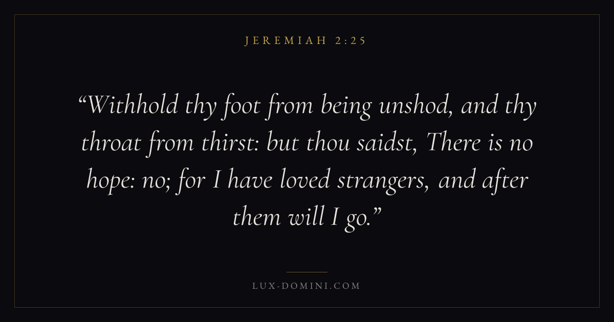 Withhold thy foot from being unshod, and thy throat from thirst: but thou saidst, There is no hope: no; for I have loved strangers, and after them will I go.