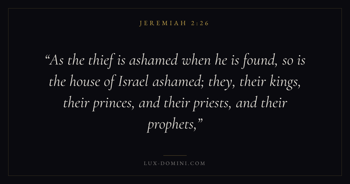 As the thief is ashamed when he is found, so is the house of Israel ashamed; they, their kings, their princes, and their priests, and their prophets,