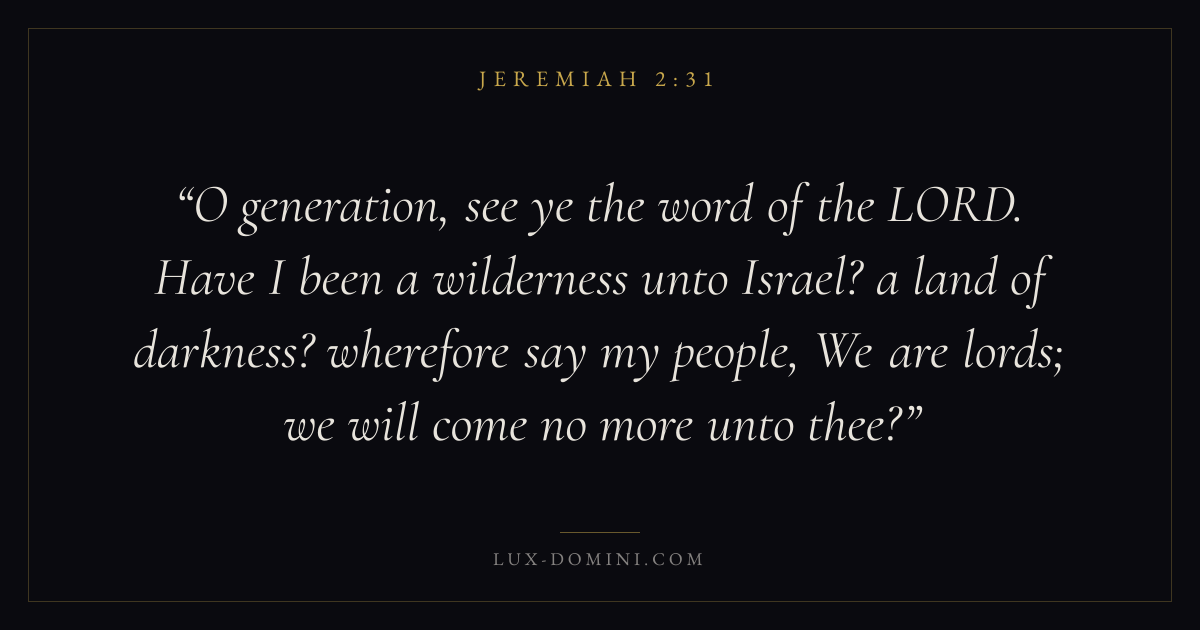 O generation, see ye the word of the LORD. Have I been a wilderness unto Israel? a land of darkness? wherefore say my people, We are lords; we will come no more unto thee?