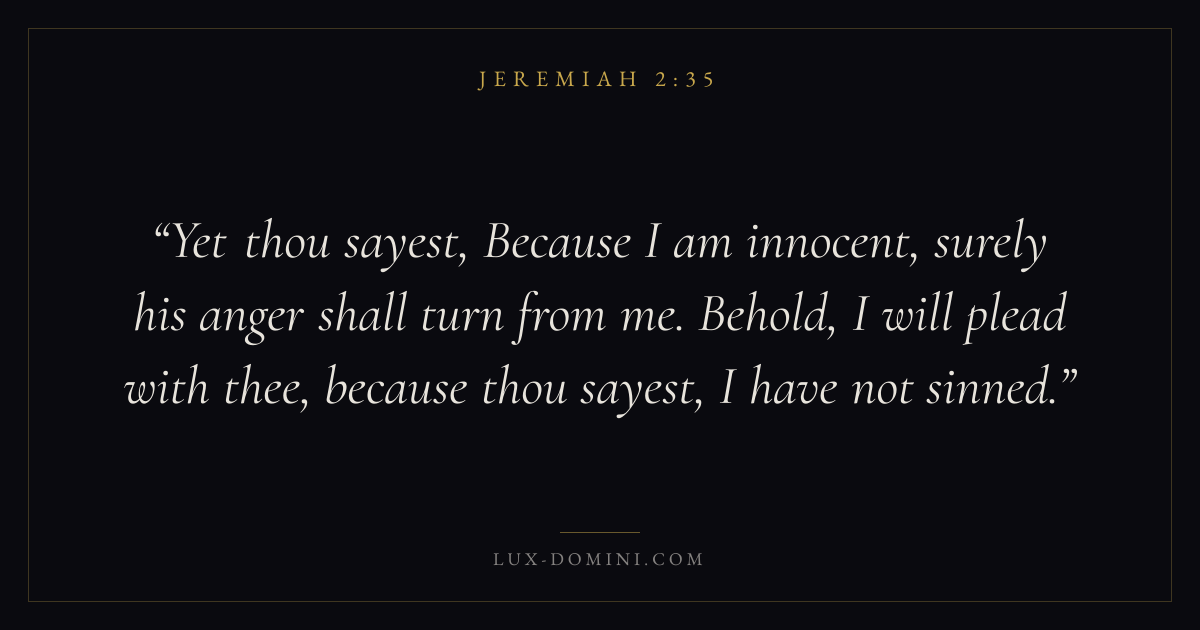 Yet thou sayest, Because I am innocent, surely his anger shall turn from me. Behold, I will plead with thee, because thou sayest, I have not sinned.