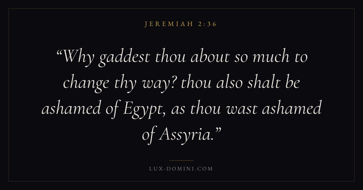 Why gaddest thou about so much to change thy way? thou also shalt be ashamed of Egypt, as thou wast ashamed of Assyria.