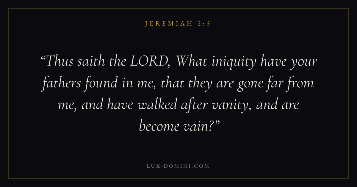 Thus saith the LORD, What iniquity have your fathers found in me, that they are gone far from me, and have walked after vanity, and are become vain?