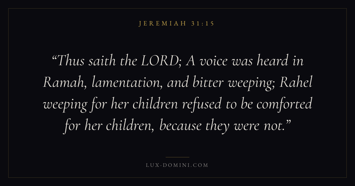 Thus saith the LORD; A voice was heard in Ramah, lamentation, and bitter weeping; Rahel weeping for her children refused to be comforted for her children, because they were not.