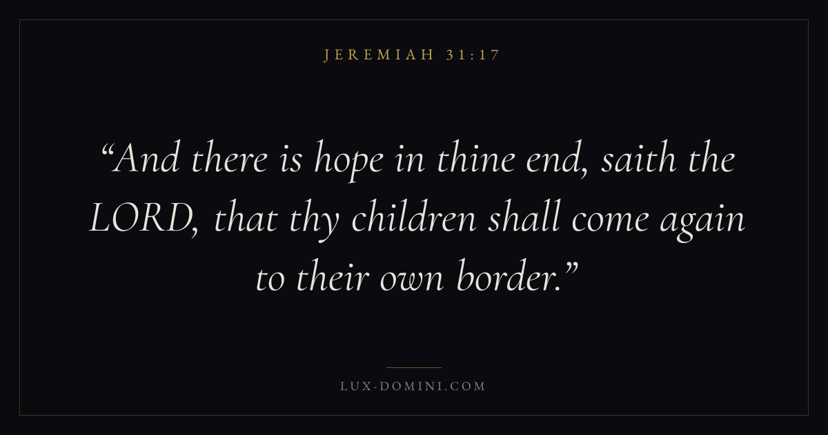And there is hope in thine end, saith the LORD, that thy children shall come again to their own border.
