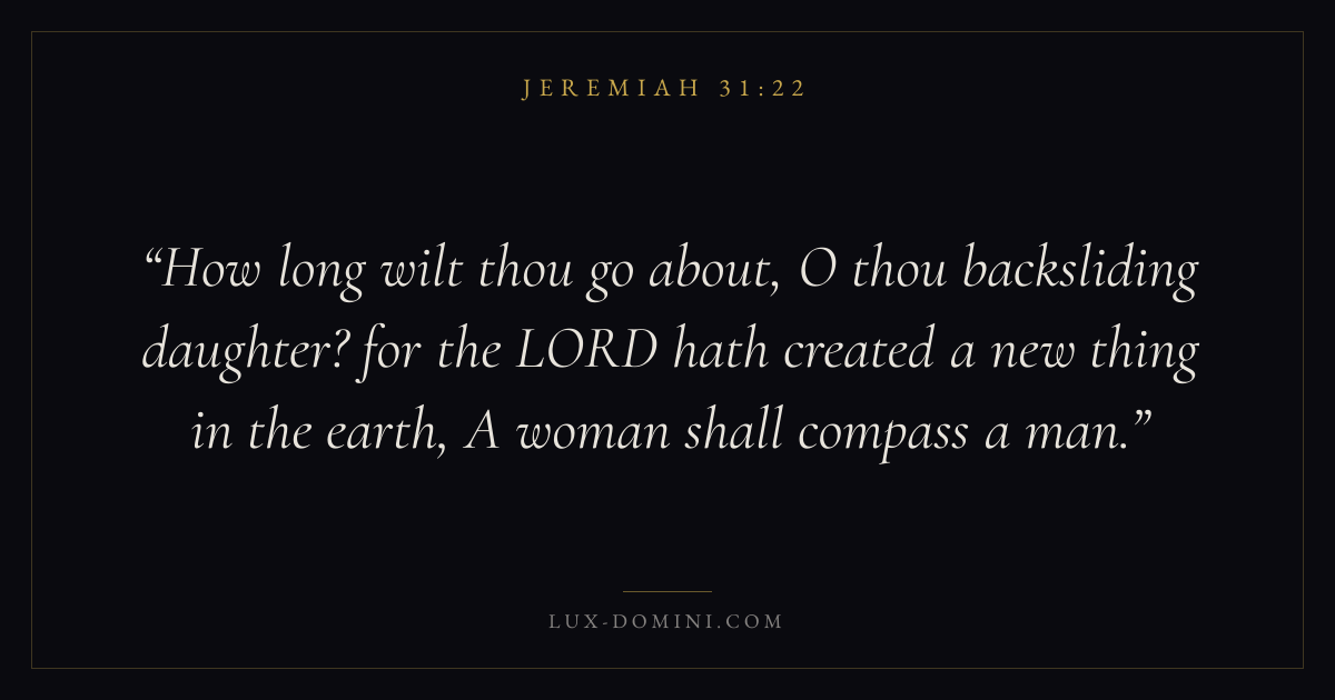 How long wilt thou go about, O thou backsliding daughter? for the LORD hath created a new thing in the earth, A woman shall compass a man.